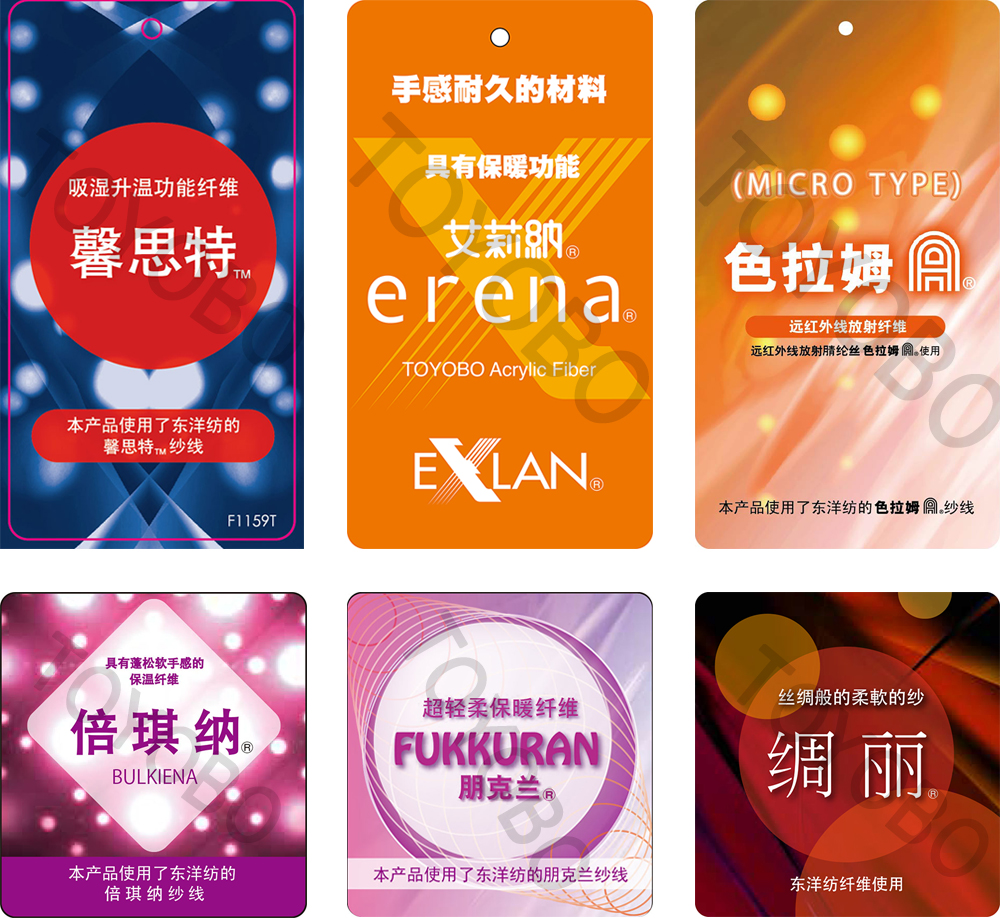 東洋紡每種產品都會搭配相應的吊牌,所有吊牌使用防偽技術印刷。
